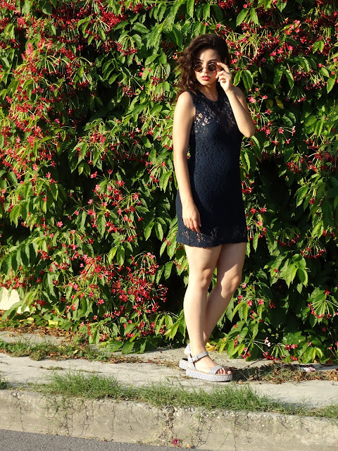 encaje negro pegadito y unas sandalias de plataforma para hacer el outfit mas